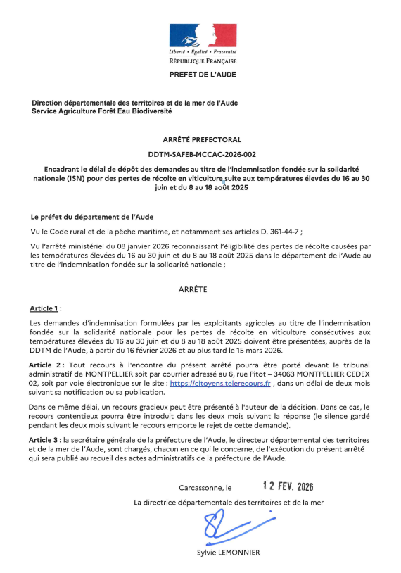 Arrêté – Pertes de récolte